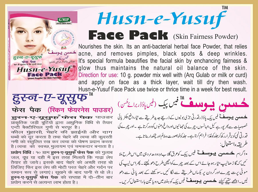 HUSN-E-YUSUF IS A FACE PACK. IT IS UNANI POWDER FOR SKIN FAIRNESS.IT IS COMPLETELY SAFE AND EFFECTIVE.
